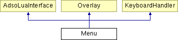 The menu system implements the overall userinterface to the application. The menu consists of a number of text pages that may be displayed as Overlay objects. The pages are preloaded at start-up from the file scripts/menu.txt. The pages may be used statically to display information (such as the "Mission objective" page) or they may be updated dynamically to implement dialog-like user inteface (such as the NetLink page). The Menu class does not implement any menu content functionality. All content functionality is implemented in the Lua script scripts/menu.lua. The Lua script defines how the menu system responds to user input (and certain application events). This division makes it possible to change the user interface without recomplilation.